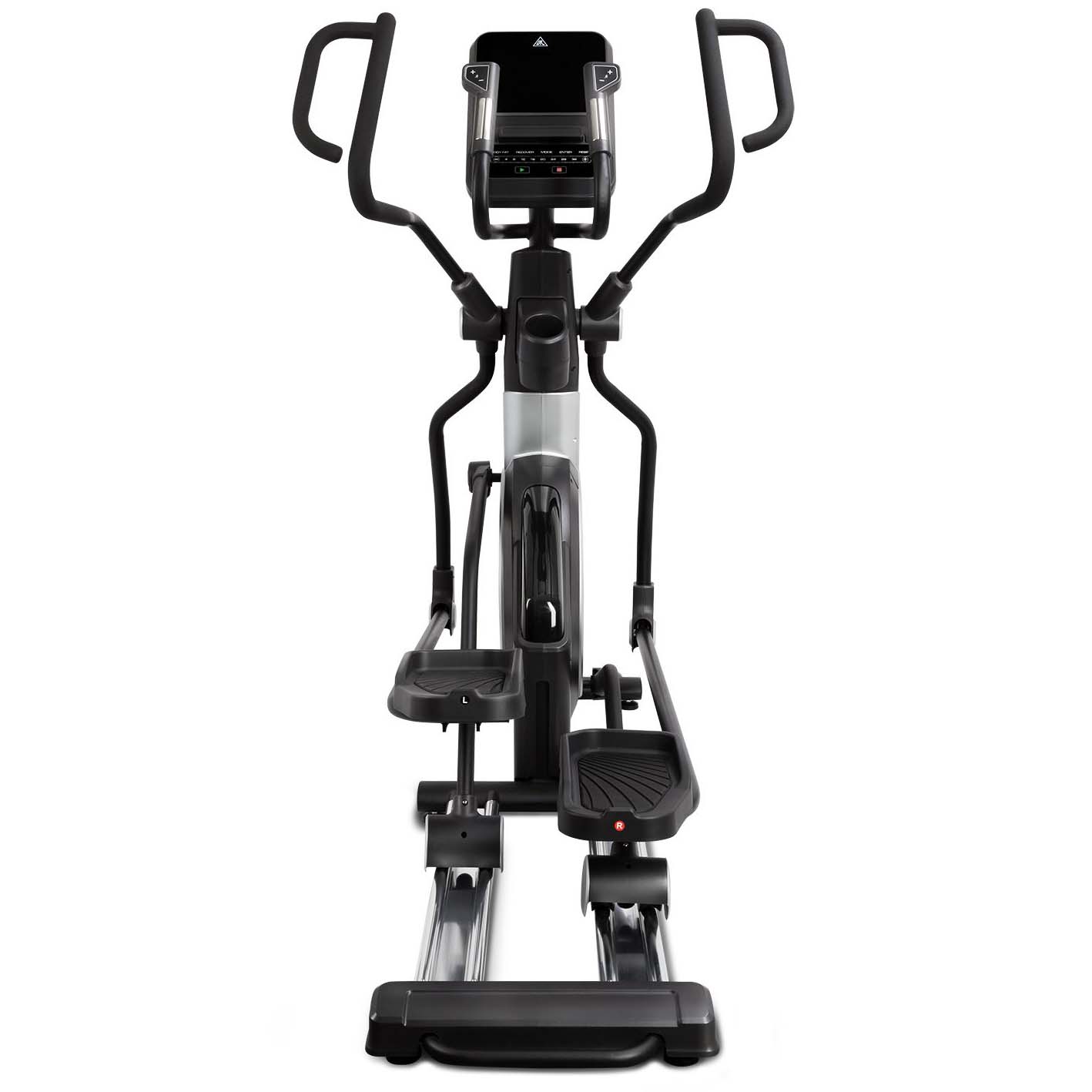 E108T — эллиптический тренажёр премиум-класса с передним маховиком для домашнего использования. Идеально подходит в качестве кардио-тренажёра для снижения массы тела и повышения выносливости, а также для поддержания мышц в тонусе. Система нагрузки Тренажёр оснащён магнитной системой нагрузки с электронной регулировкой. Менять уровень сложности удобно при помощи кнопок на панели управления. 32 уровня нагрузки с плавным переключением помогут подобрать оптимальную сложность для каждой вашей тренировки. Мультимедиа Для занятия можно выбрать одну из 12 встроенных программ тренировок, каждая из которых адаптирована под определённые требования. Большой цветной дисплей отображает основные показатели: скорость, дистанцию, уровень сложности, время занятия, расстояние, количество сожжённых калорий, пульс. Датчики пульса расположены на поручнях. MP3 и USB вход позволяют прослушивать музыку во время тренировки. Удобство перемещения В основании тренажёра расположены колёсики и удобная ручка. Это позволяет легко транспортировать его до и после тренировки или если нужно убрать на время.