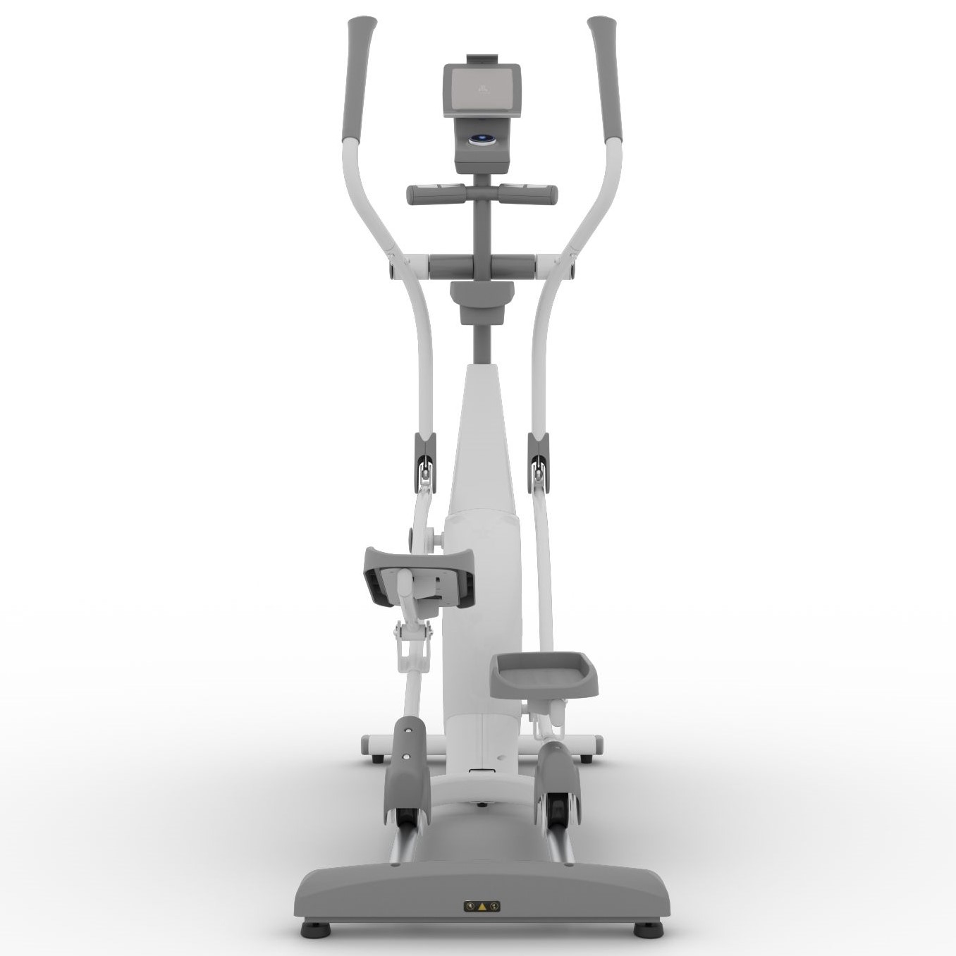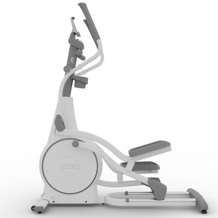 На передней консоли расположены подставка под планшет и круглый LED-дисплей с синей подсветкой, который отображает основные параметры тренировки: время, скорость, пульс (сенсорные датчики на поручнях), расстояние, затраченные калории. Максимально допустимый вес пользователя — 120 кг. Оптимальная длина шага — 40,64 см. Удобные широкие педали оснащены нескользящим покрытием и бортиками по краям. Предусмотрено 8 уровней нагрузки (регулируются вручную). Тренажёр оснащён транспортировочными роликами и компенсаторами неровности пола.