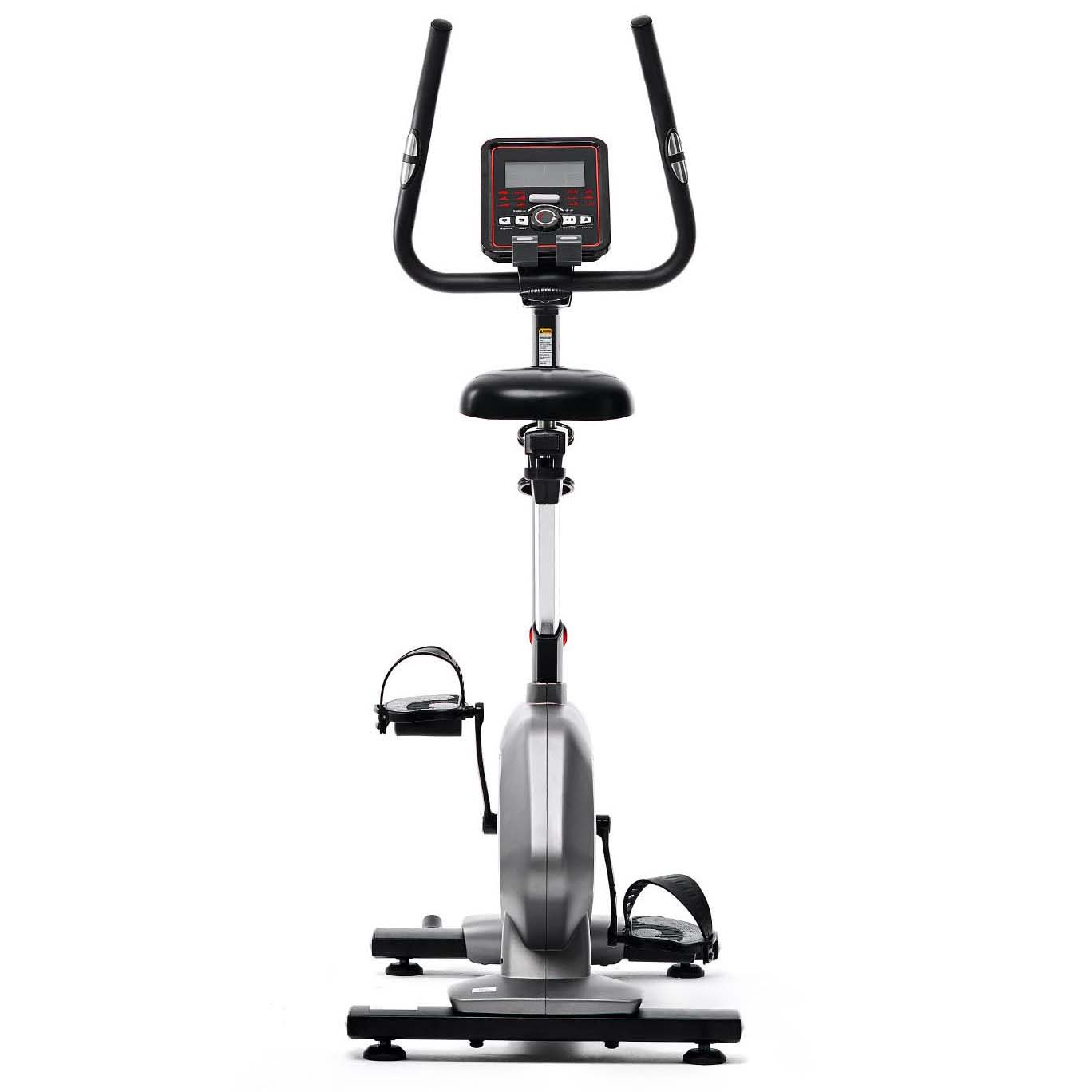Велотренажёр премиального сегмента предназначен для домашнего использования. Предназначен для эффективных кардио-тренировок и укрепления мышц ног. Нагрузка тренажёра Тренажёр В300 оснащён магнитной системой нагружения с электронной регулировкой, что удобно для выбора подходящего уровня сложности из предусмотренных 32 ступеней. Маховик имеет массу 9 кг и расположен в нижней части тренажёра. Максимально допустимый вес пользователя — 150 кг. Мультимедиа На передней консоли расположен LCD-дисплей 5,5" с подсветкой в жёлтом и белом цветах. На мониторе удобно отслеживать все параметры занятия: время, скорость, уровень сложности, расстояние, затраченные калории, уровень пульса и прочие. Есть 12 предустановленных программ на выбор. в комплектацию входят шнур питания и адаптер. Комфортные тренировки Для отслеживания уровня пульса необходимо держать руки на специальных датчиках, расположенных на поручнях тренажёра. Параметры отображаются на дисплее. На передней части есть держатель для бутылки и планшета. Сиденье регулируется в 10-ти положениях по высоте и в 2-х по горизонтали, что удобно для пользователей с разным ростом. Педали с фиксирующими ремешками и противоскользящим покрытием обеспечивают безопасность во время тренировки. Компенсаторы неровности пола позволяют устанавливать тренажёр в различных местах. Хранение и транспортировка В передней части тренажёра предусмотрены транспортировочные ролики, а в задней — специальные ручки, взявшись за которые его легко откатить в необходимое место. Вес в сборке составляет 40 кг. Размеры в рабочем состоянии достаточно компактны — 109 х 56 х 149 см.